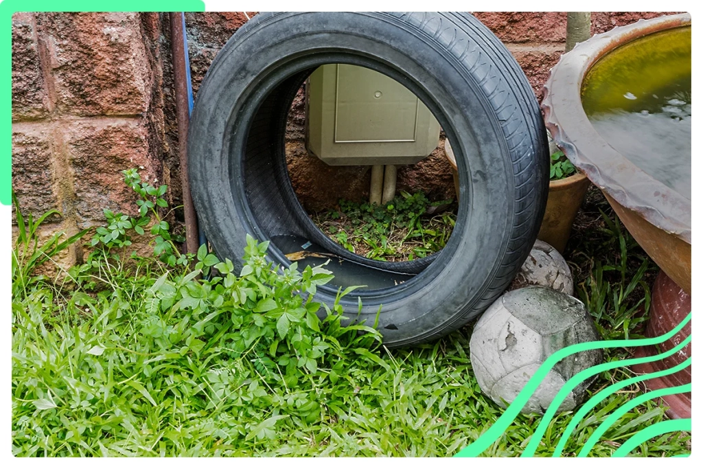 Dengue: doença que infecta milhares de brasileiros todos os anos. Embora não tenha o mesmo ciclo oral-fecal que a maioria das doenças causadas por falta de saneamento básico, essa enfermidade é transmitida por meio de mosquitos infectados, principalmente o Aedes aegypti, que se desenvolvem em água parada. Os sintomas incluem febre alta, dor de cabeça, dor atrás dos olhos, dor nas articulações e músculos, e manchas vermelhas na pele. Para manter a dengue longe da sua família, é crucial eliminar os criadouros do mosquito, como água parada em recipientes.